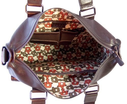 - Внутри главного отсека имеется один карман на молнии, место для телефона, документов, портмоне и ручек