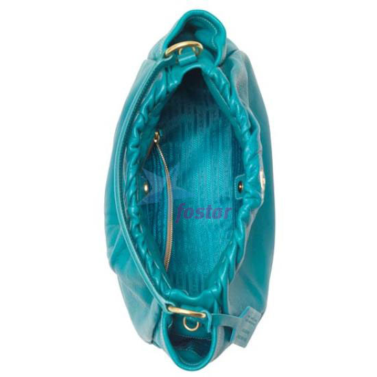 Описание : Добавьте новый и неожиданный акцент с этой смелой сумочкой Prada. Разработанный богатой с гравийной посыпкой кожи в забавном бирюзовом оттенке, эту бродягу отличают мягкая форма, чистые линии, и красиво собранная вершина. O-кольца Goldtone добавляют прекрасный акцент luxe. Открытые карманы стороны. Приспосабливаемый ремень. Бирюзовый шаблонный интерьер с карманом почтового индекса. Измерения: 14 "L x 5" W x 16 "H; 6" снижений ручки.