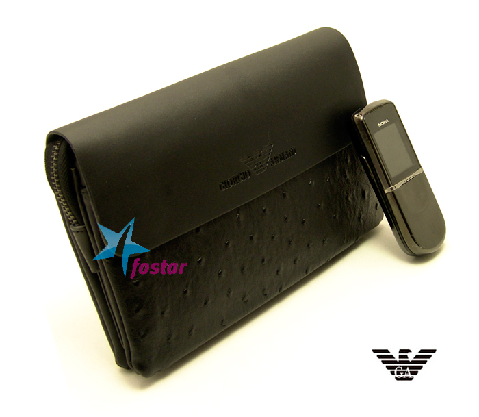 Кожаная мужская черная барсетка-клатч Giorgio Armani