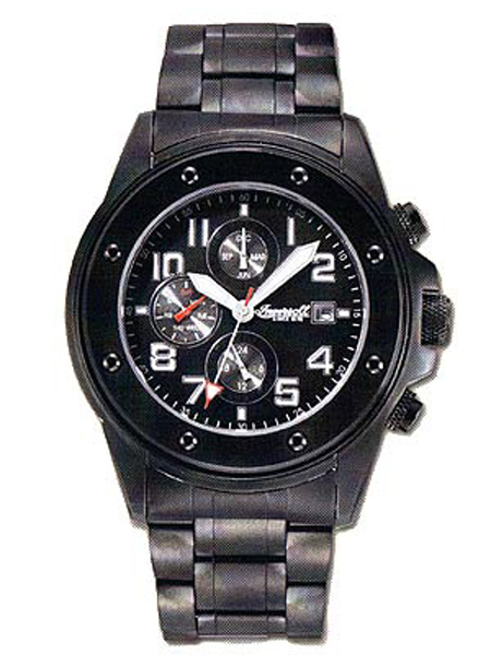 Табло: Часы, минуты, секунды. Календарь. На стрелках и ризках нанесен светонакопитель - в темноте светится. Секундомер.